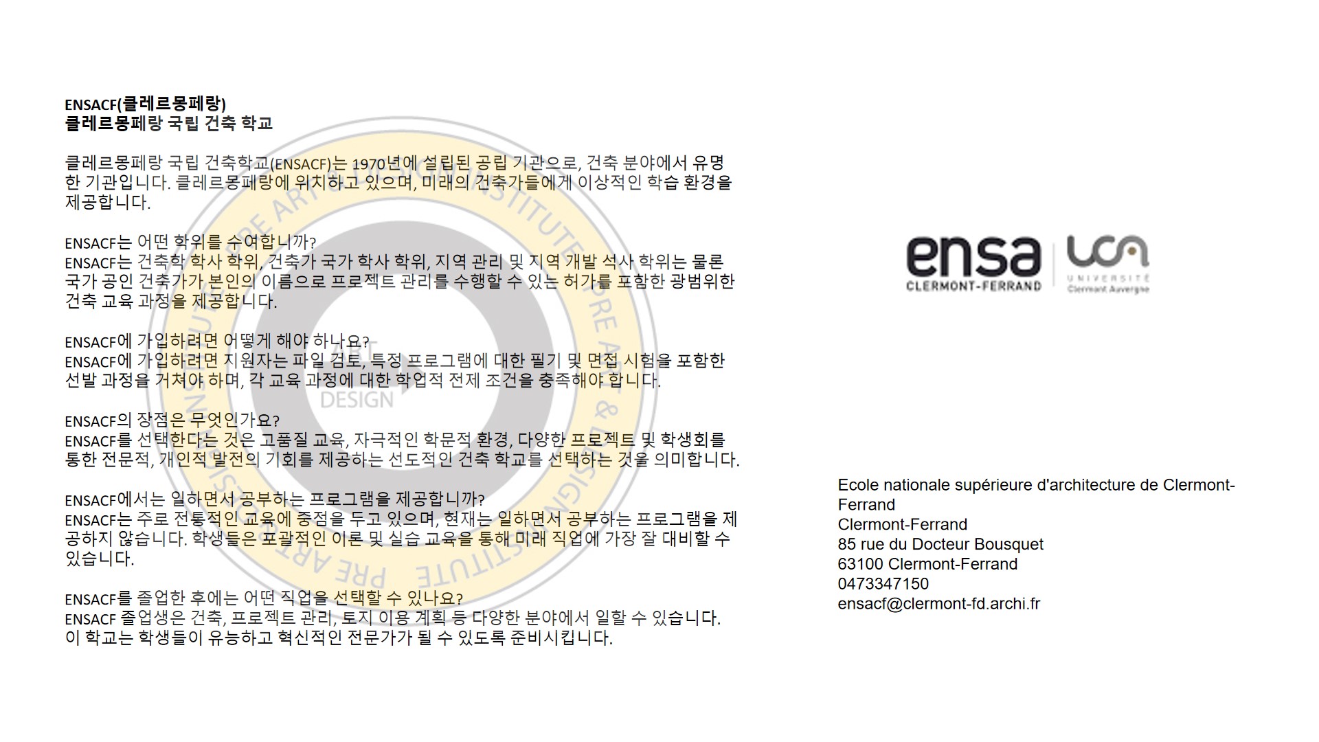 정체성: 마시프 센트랄(Massif Central) 지역의 대표적인 건축 학교로서, 지역 사회와 깊이 연관된 교육을 제공합니다.
