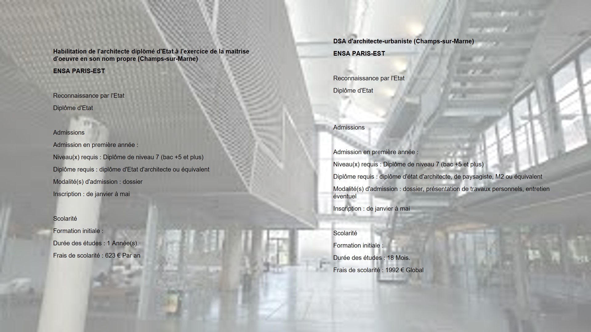 - 역사: 1998년에 설립되었으며, 과거에는 '마른-라-발레 건축학교(ENSA Marne-la-Vallée)'로 불렸습니다.